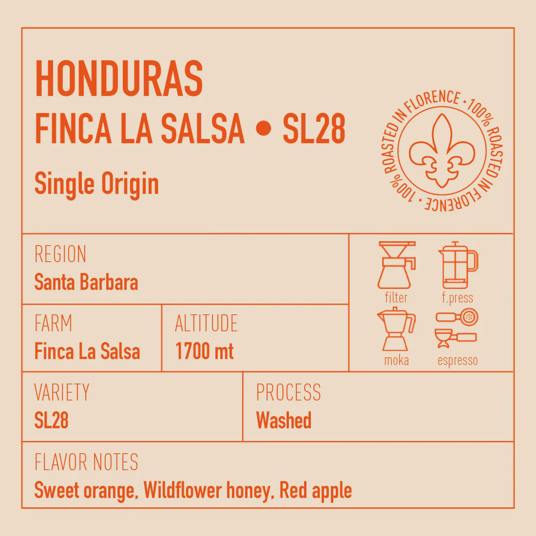Proveniente dalla rinomata regione di Santa Bárbara, questo SL28 cresce a 1700 m di altitudine, dove microclima e suolo ricco contribuiscono a sviluppare un profilo aromatico complesso. Il processo di lavorazione washed esalta note fruttate e pulite, con sentori di arancia, mela rossa e miele.